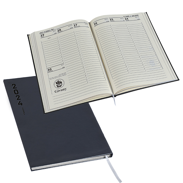 יומן שבועי יוקרתי שחור שוליים כסופים תשפ''ג 2023-2024 ל-16 חודש משולב עם מחברת עסקים 24 עמוד מבית המותג גבעוני