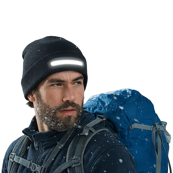כובע צמר איכותי עם פס תאורת LED מובנה בעוצמה של 3W COB – הפתרון המושלם לתאורה hands-free בכל תנאי שטח ומזג אוויר.
