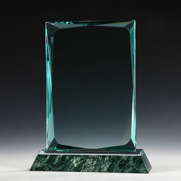מגן הוקרה מלבני מזכוכית קריסטל בסיס שיש מובנה