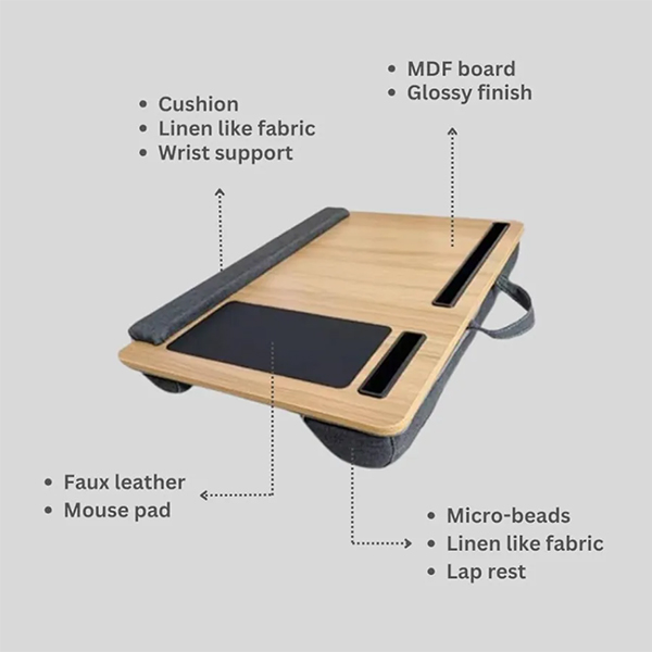 ריפוד רך, משטח עבודה רחב ועמיד, ופתרונות חכמים כמו מקום ייעודי לטאבלט ומשטח עכבר מובנה
