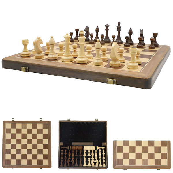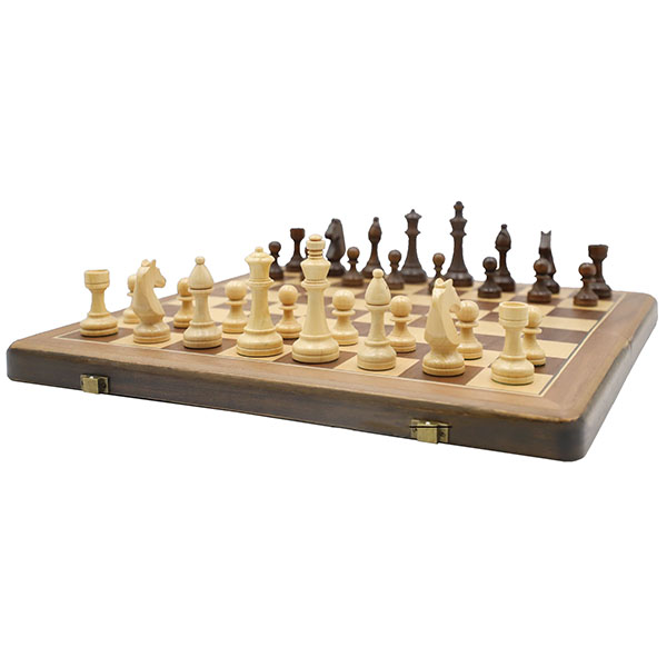 משחק שחמט ושש־בש יוקרתי במארז עץ אגוז מגנטי
