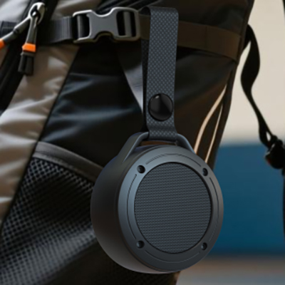 רמקול BT קומפקטי ונייד עם רצועת תלייה לנשיאה קלה וחיבור מהיר לכל מכשיר.