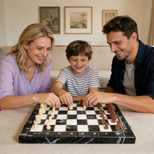 שחמט יוקרתי מתקפל מעץ בגימור פיאנו אלגנטי