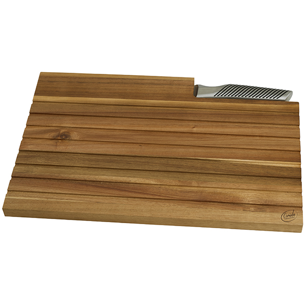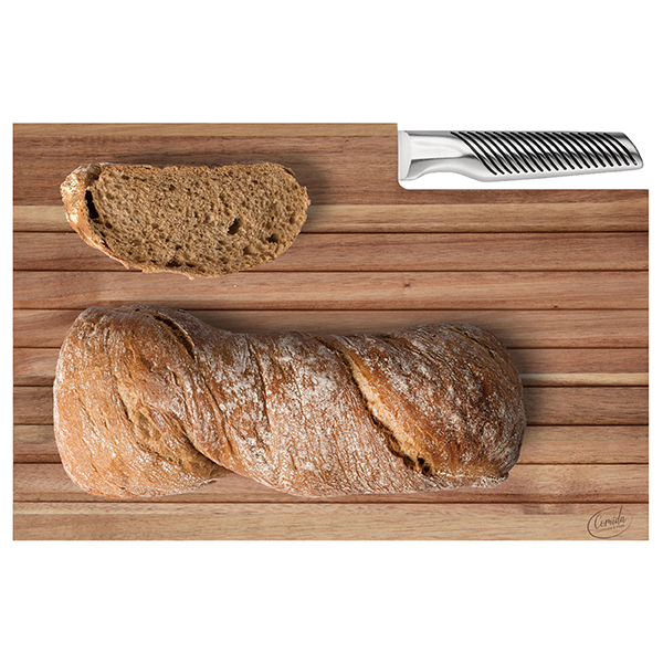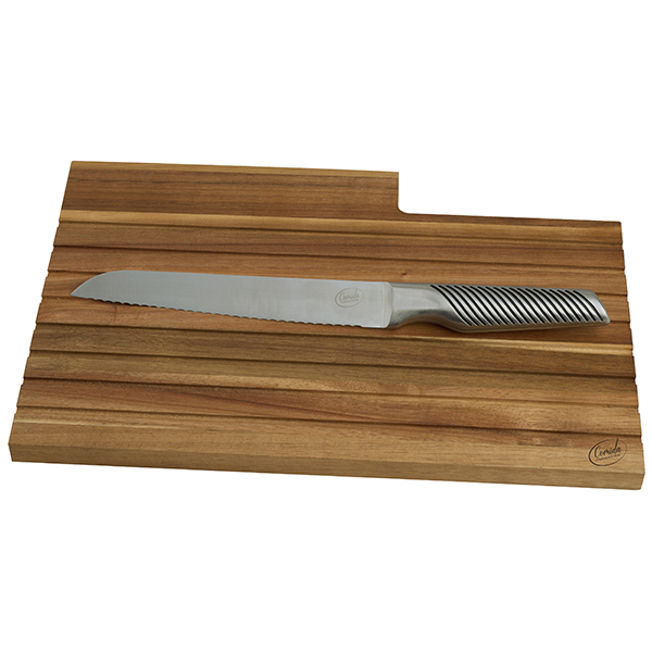השילוב בין לוח העץ האיכותי לסכין המשוננת מעניק חוויית חיתוך מקצועית ומראה אלגנטי על שולחן ההגשה