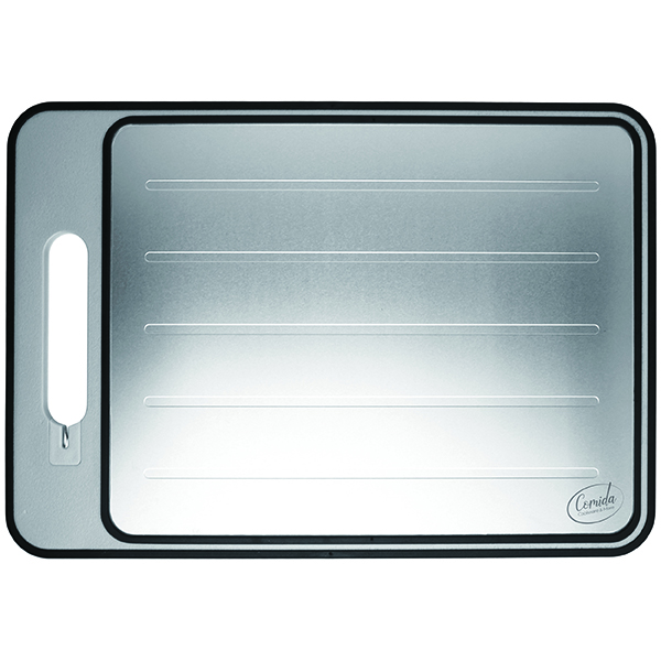 "Comida" סט 4 חלקים למטבח כולל משטח הפשרה/לוח חיתוך סכין שף, קילשון, מלקחיים, משחזת מובנת, מגרדת שום