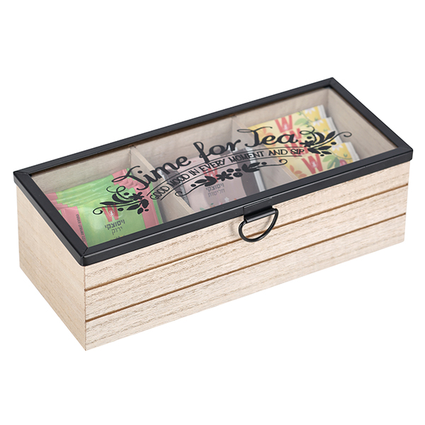 "Time for Tea" מארז עץ טבעי לתה, 3 תאים